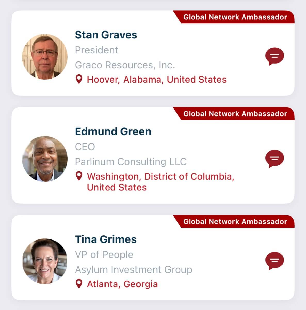 The Global Network Ambassador Program is a member-driven initiative created to strengthen meaningful connections across the global SIBF community. Designed in response to feedback from our international networks in CELA, Mela, and SEALA, the program offers a simple and trusted way for members to engage across regions, industries, and generations of the Leadership Academy experience. Members who opt in will be identified in the Global App and serve as approachable connection points for international outreach. Ambassadors commit to being responsive and helpful when contacted, offering guidance, introductions, or insight from their own experience. There are no financial expectations or obligation, instead the program reflects the spirit of our network by making it easier for members to support one another through a willingness to connect.